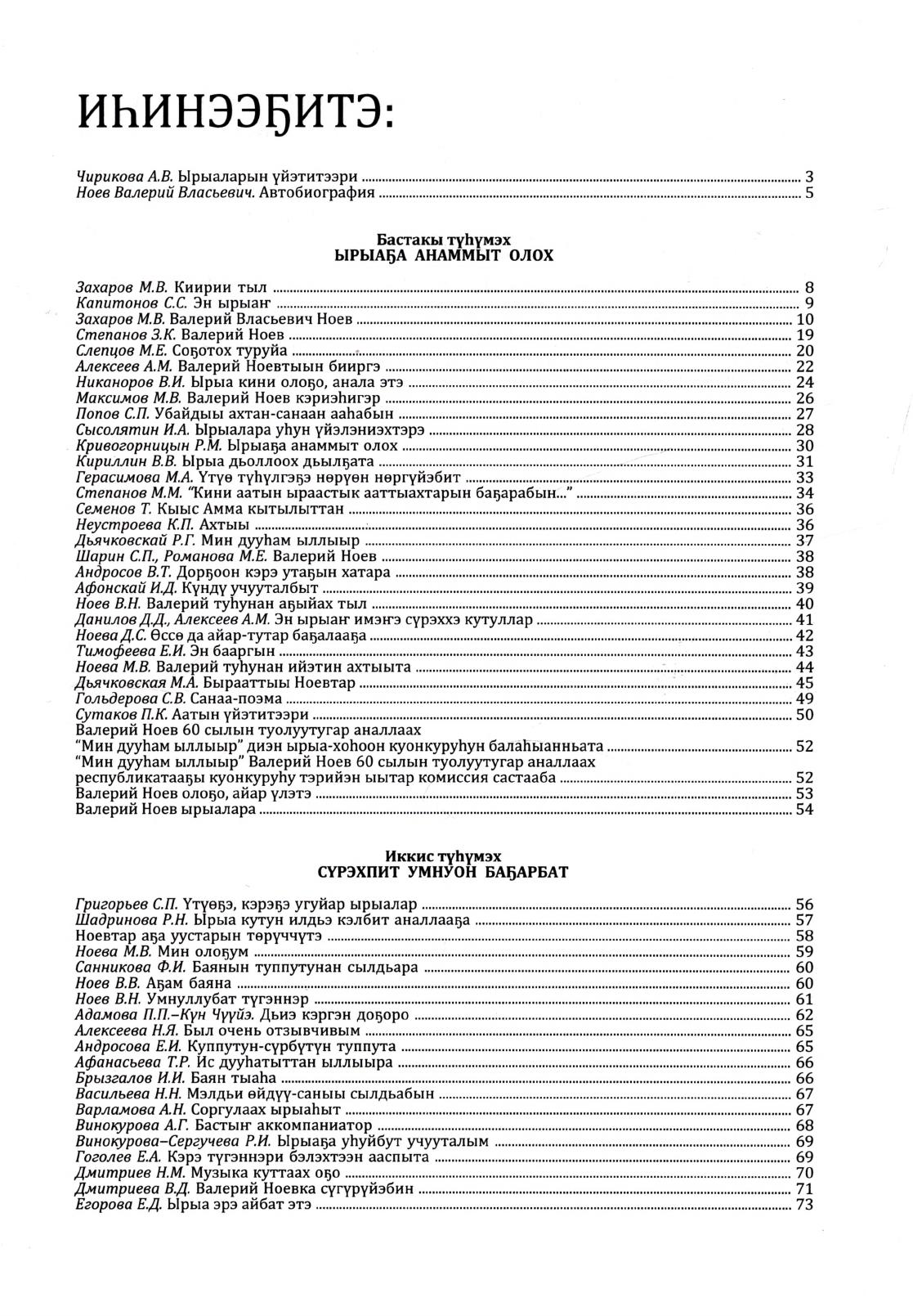 Ноев Валерий Власьевич : олоҕун, айар үлэтин туһунан ахтыылар, 80 / хомуйан оҥордулар: А. В. Чирикова, У. И. Попова ; [киирии тылы суруйдулар: А. В. Чирикова, М. В. Захаров]. - Дьокуускай : [и. с.], 2019. - 211, [4] с., [12] л. ил., портр.