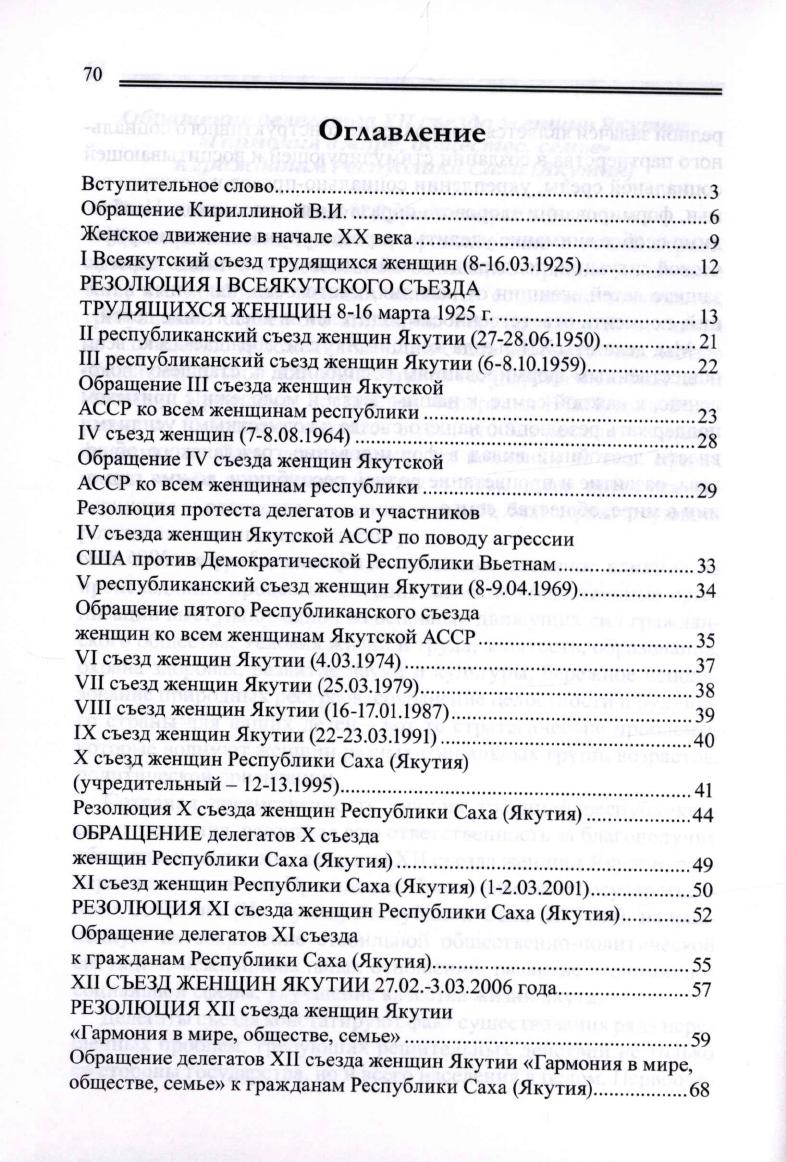 Сборник включает информационные материалы о двенадцати съездах женщин Якутии (1925-2006 годы), сформированные на основе сохранившихся архивных документов, газетных материалов, отдельных изданий и итоговых документов съездов