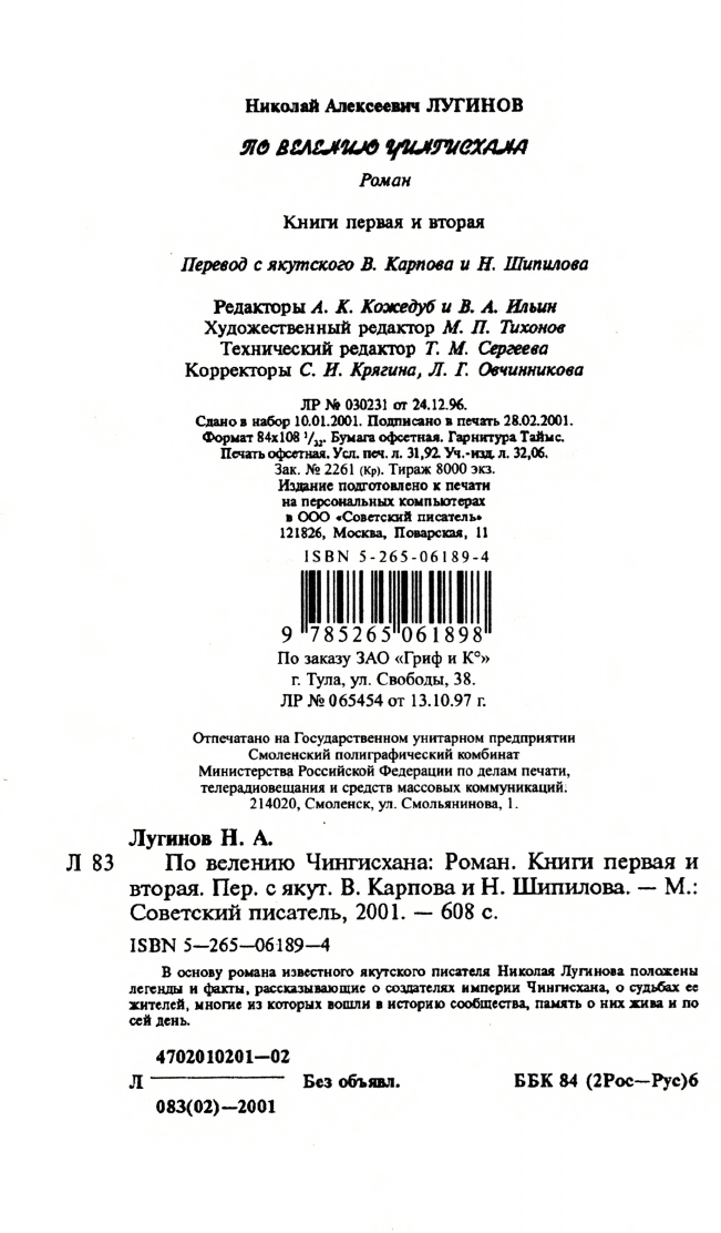 - Якутско-русские и русско-якутские переводы произведений писателей > Переводы произведений якутских писателей на русский язык > Народные писатели Якутии > Лугинов Николай Алексеевич,