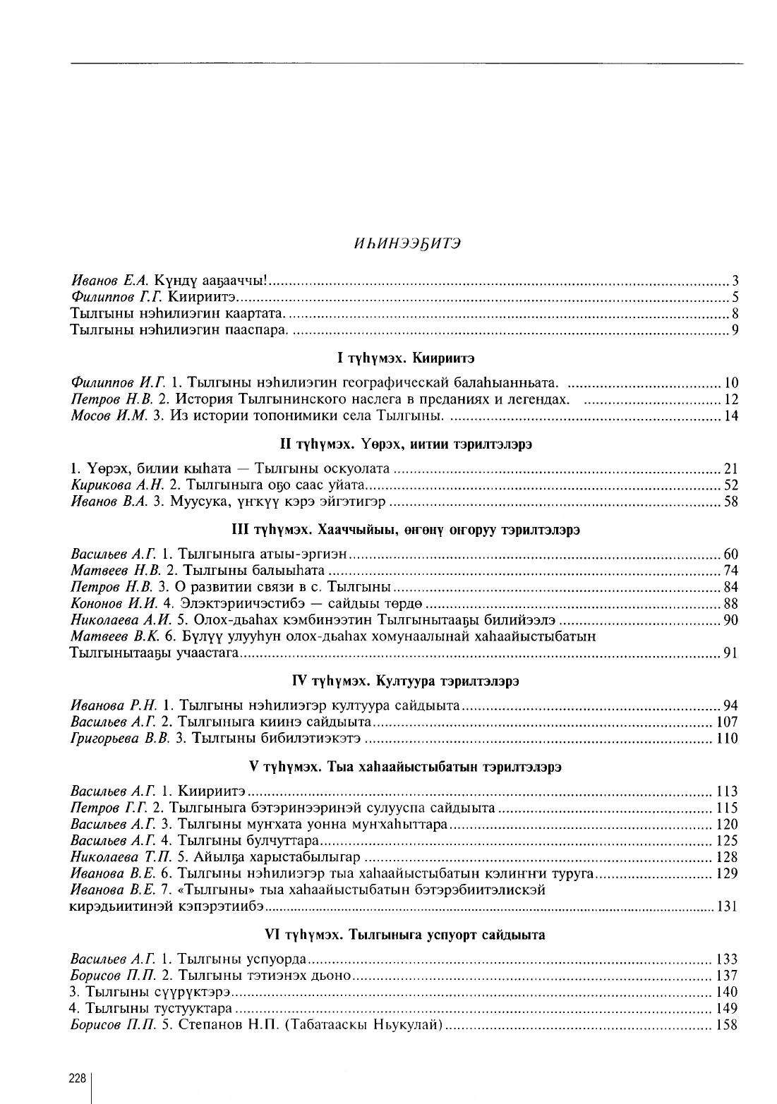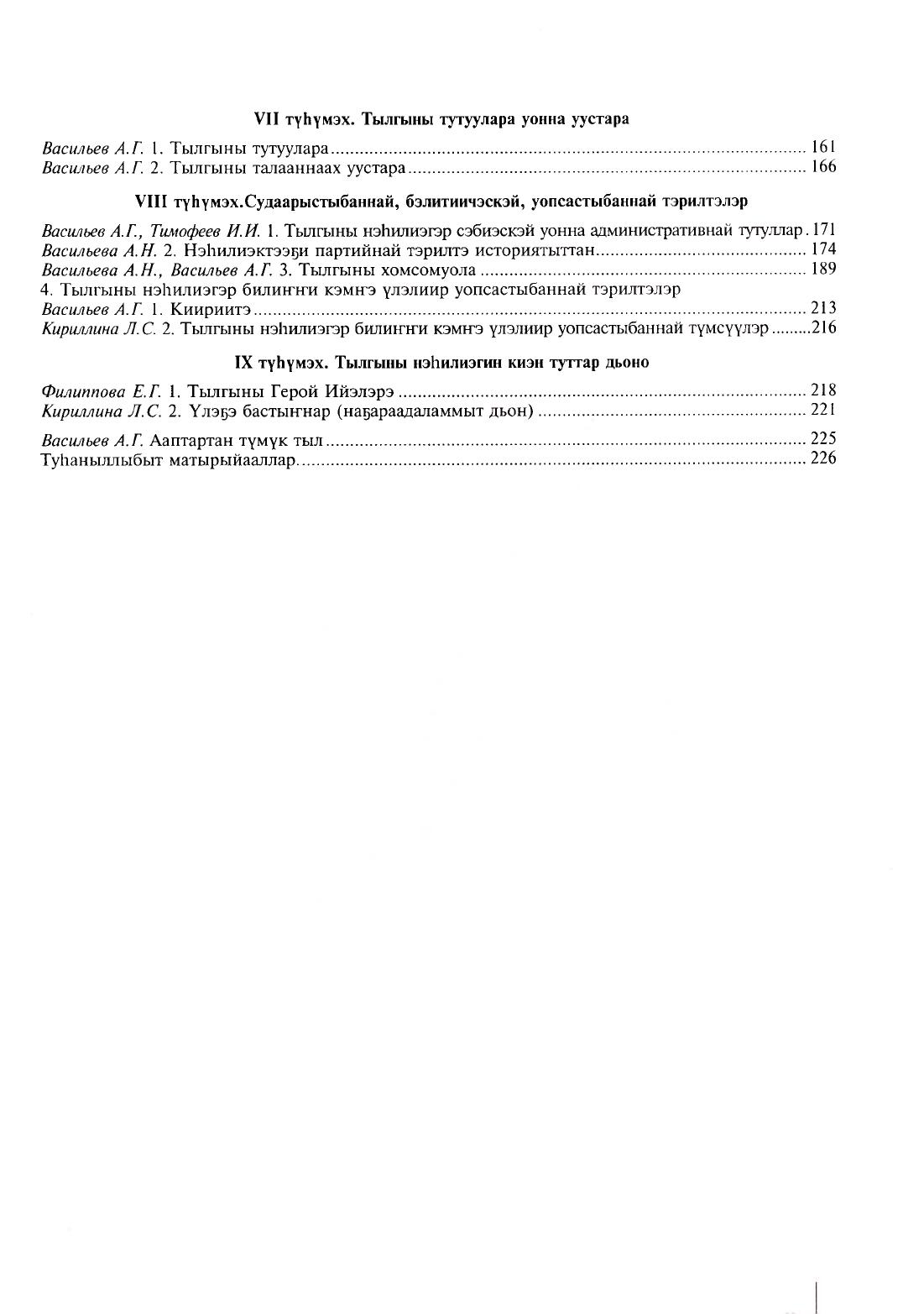 Тылгыны / [хомуйан оҥорооччу, редактор, ааптар Е. Г. Филиппова ; эрэдээксийэлиир сүбэ: Г. Г. Филиппов, Г. С. Васильев, П. П. Борисов]. - Дьокуускай : [и. с.], 2015-. - 25 см. Ч. 3: Бүлүү улууһа / хомуйан оҥорооччу, ааптар, эрэдээктэр А. Г. Васильев ; эрэдээксийэлиир сүбэ: А. Н. Васильев, Е. Г. Филиппов, Г. Г. Филиппов ; [киирии тылы суруйдулар: Е. А. Иванов, Хабырыыл Билиикэп]. - 2020. - 228, [1] с., [10] л. ил., портр.
