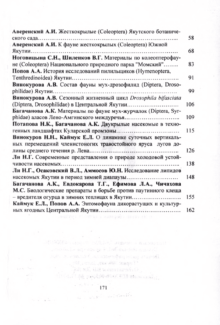 Энтомологические исследования в Якутии : сб. науч. тр. / Рос. акад. наук, Сиб. отд-ние, Ин-т биол. проблем криолитозоны, Рус. энтомол. о-во. Якут.отд-ние ; [отв. ред. А. П. Исаев]. - Якутск : ИБПК СО РАН, 2003. - 171, [1] с.