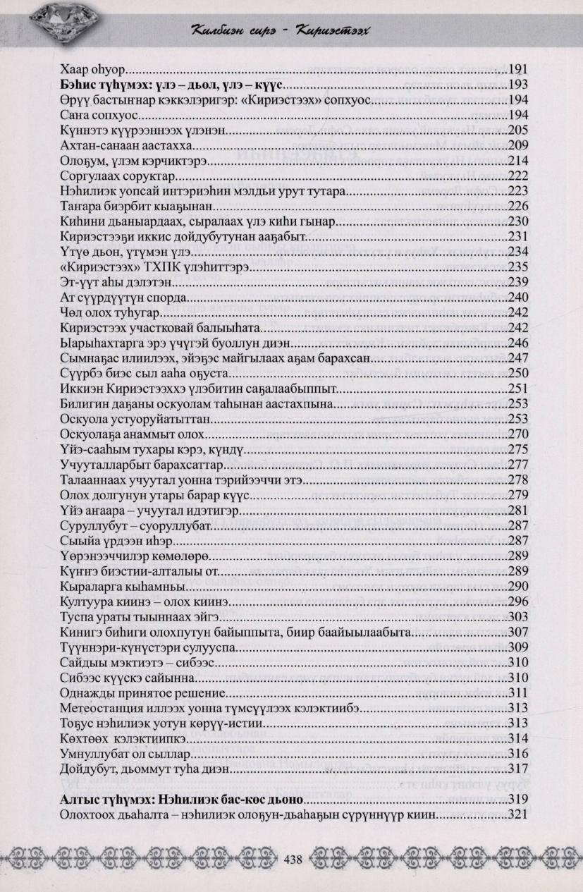 Издание посвящено истории Крестяхского наслега Сунтарского улуса. В книгу вошли воспоминания ветеранов, жителей наслега, а также почетных работников сельского хозяйства, которые внесли свой вклад в развитие Сунтарского улуса
