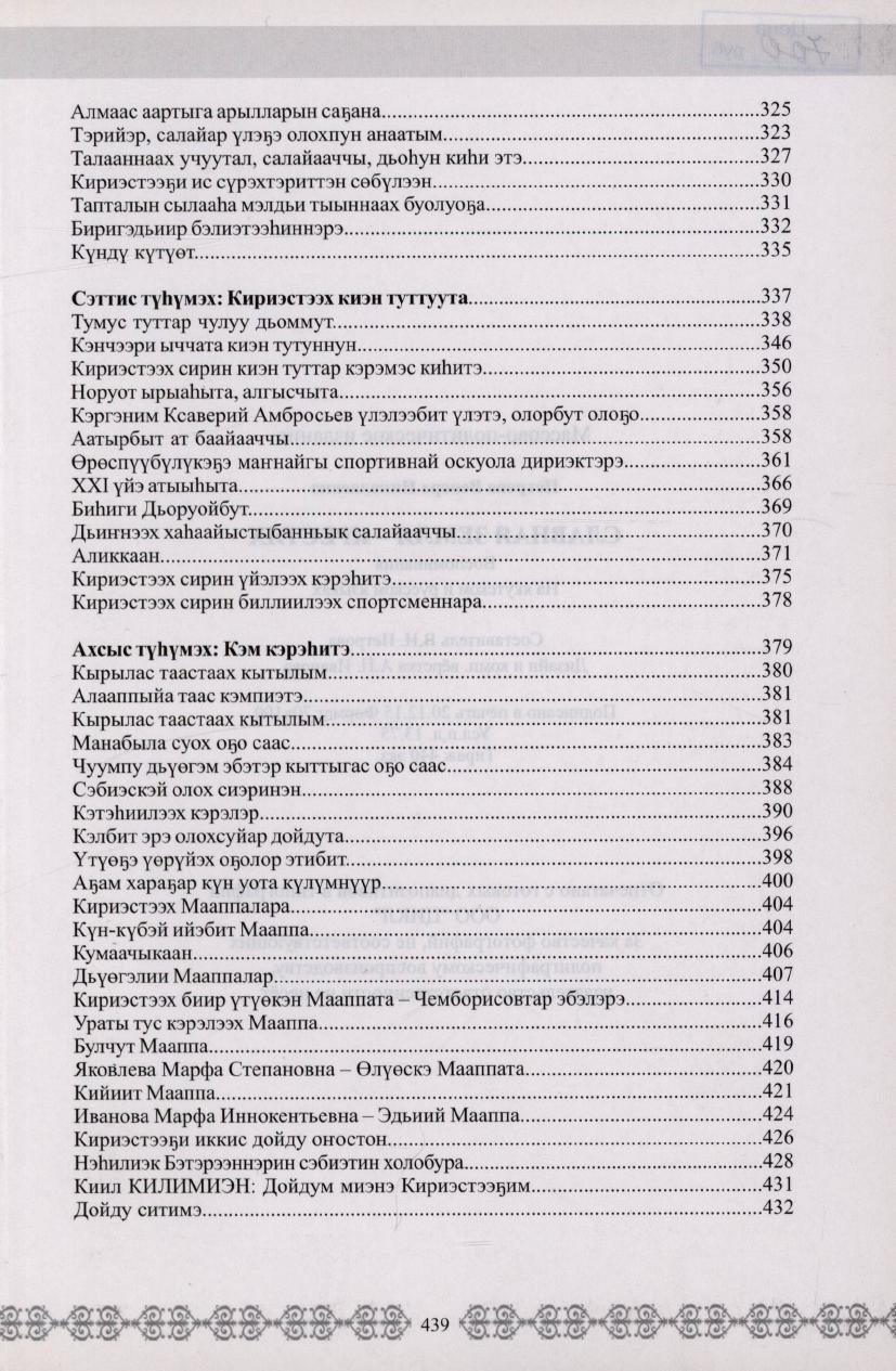 Килбиэн сирэ - Кириэстээх : [ахтыылар / хомуйан оҥордо В. Н. Петрова ; редколлегия: М. И. Коколов, К. И. Николаев, П. П. Николаев уо. д.а.]. - Дьокуускай : [и. с.], 2015. - 439 с.