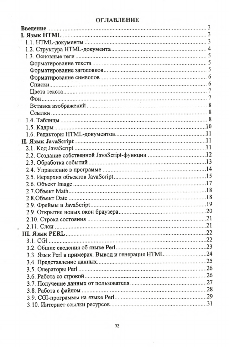 В методических указаниях дано краткое описание основных команд (тегов) языка HTML создания гипертекстовых документов. Приведены примеры использования языков Perl и JavaScript для создания динамических Web-страниц
