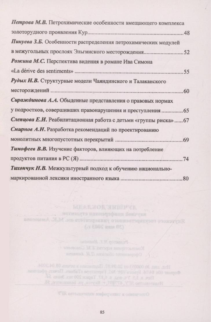 Лучшие доклады научной конференции студентов Якутского государственного университета им. М. К. Аммосова (30 мая 2003 г.) / [редколлегия: Фридовский В. Ю. и др.]. - Якутск : Изд-во ЯГУ, 2004. - 84, [1] с.