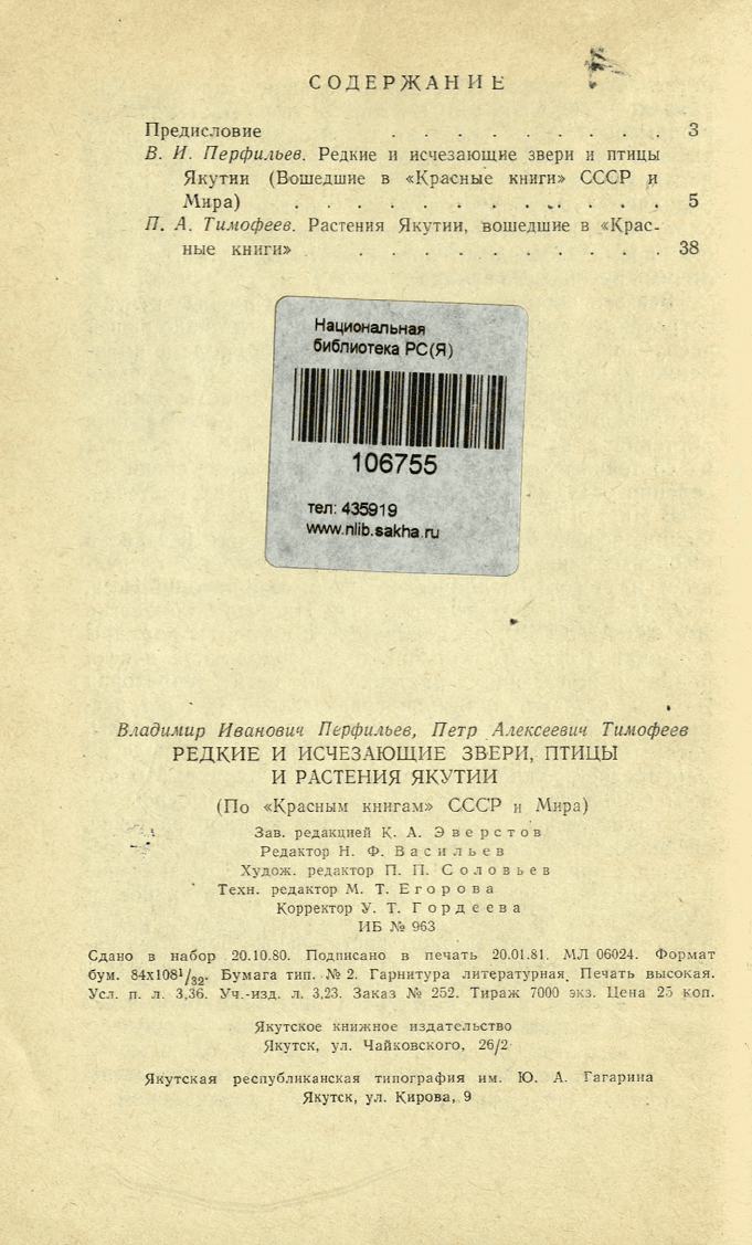 В брошюре освещаются вопросы охраны редких и исчезающих животных и растений Якутии, внесенных в "Красные книги" СССР и Мира