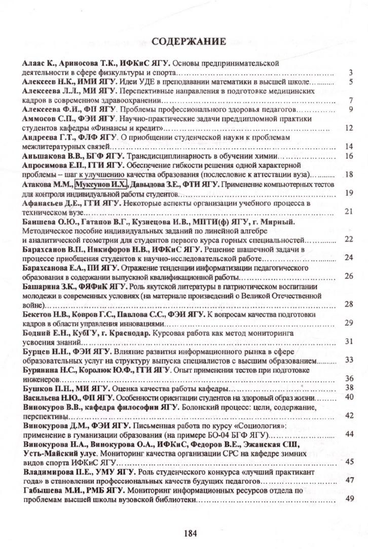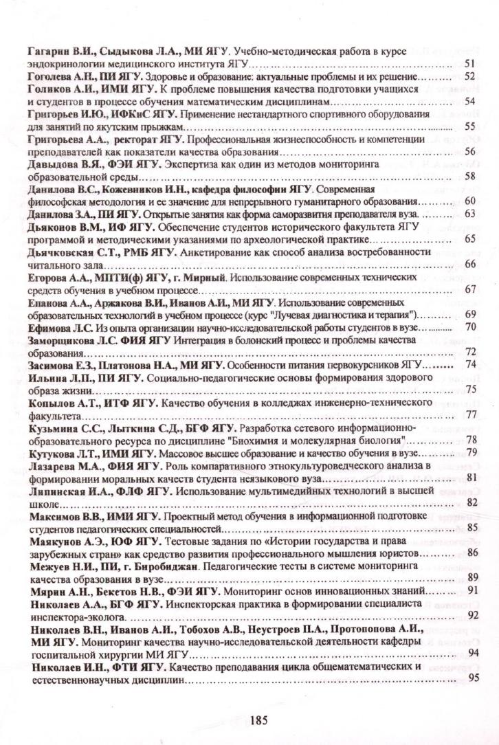 Комплексная оценка деятельности вуза как мониторинг системы качества образования и воспитания : материалы межрегиональной научно-методической конференции, 2-3 февраля 2005 г. - Якутск : Изд-во ЯГУ, 2005. - 20 см. Секция 3: Мониторинг качества учебно-методической работы и научно-исследовательской работы в вузе / [редколлегия: В. В. Стогний (ответственный редактор), М. М. Фомин, Е. А. Архангельская]. - 2005. - 187 с.