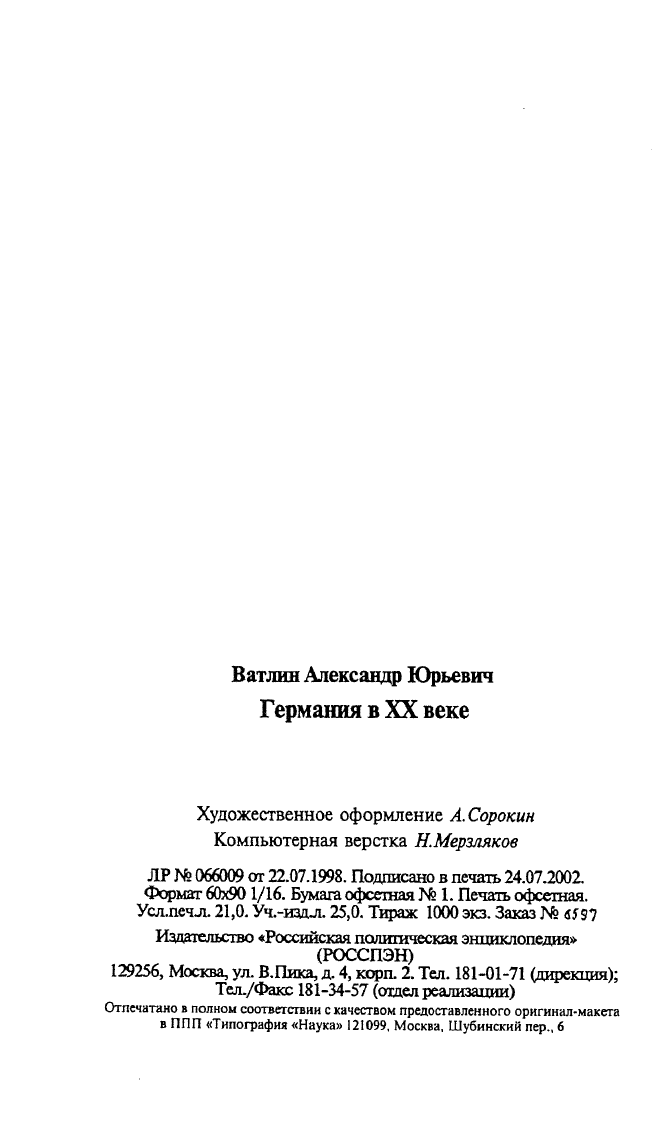 Германия в ХХ веке. - М. : Росспэн, 2002. -