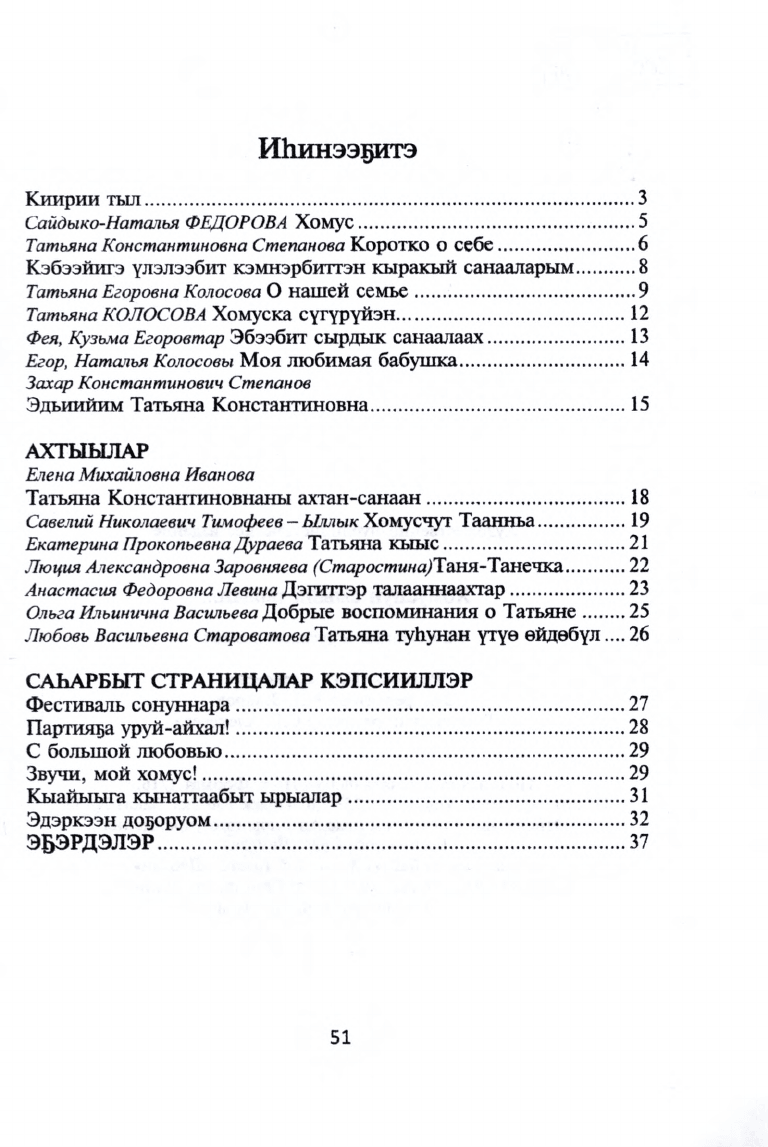 Книга о ветеране художественной самодеятельности, талантливой хомусистке, ветеране труда, почетном гражданине Кобяйского улуса, работавший фельдшером Кобяйской центральной улусной больнице Т. К. Cтепановой