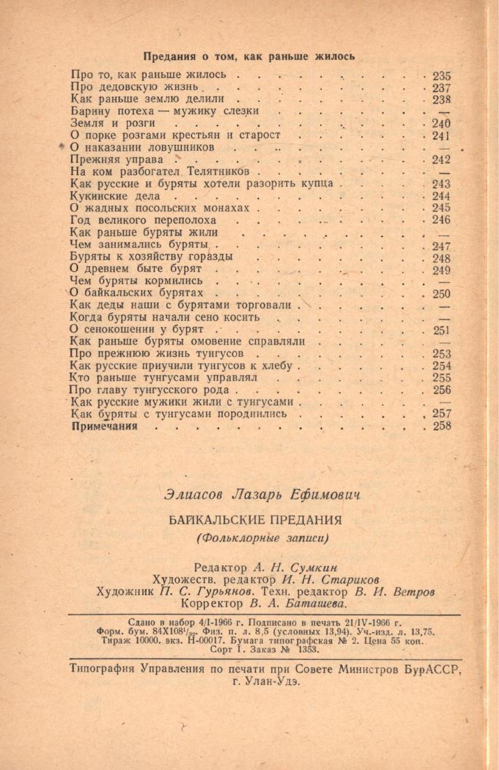 Байкальские предания : фольклорные записи / Л. Е. Элиасов. - Улан-Удэ : Бурятское книжное изд-во, 1966. - 271, [1] с.