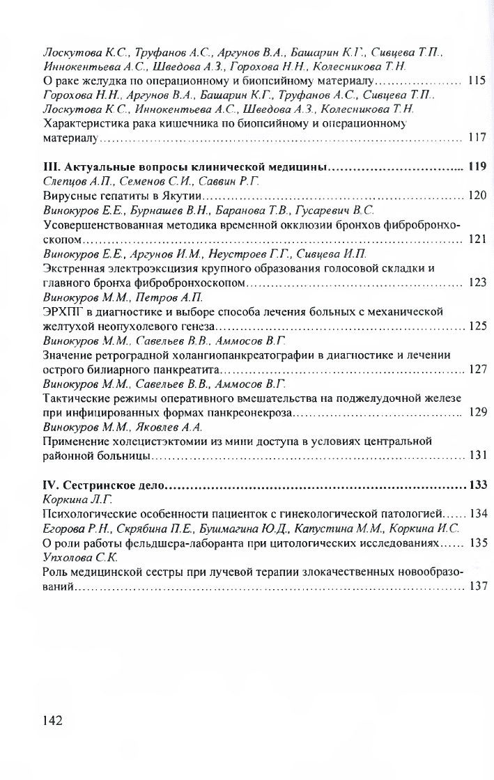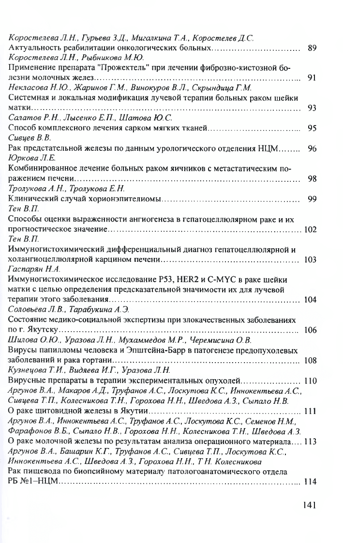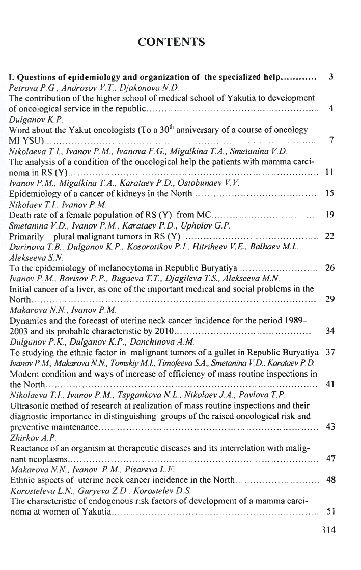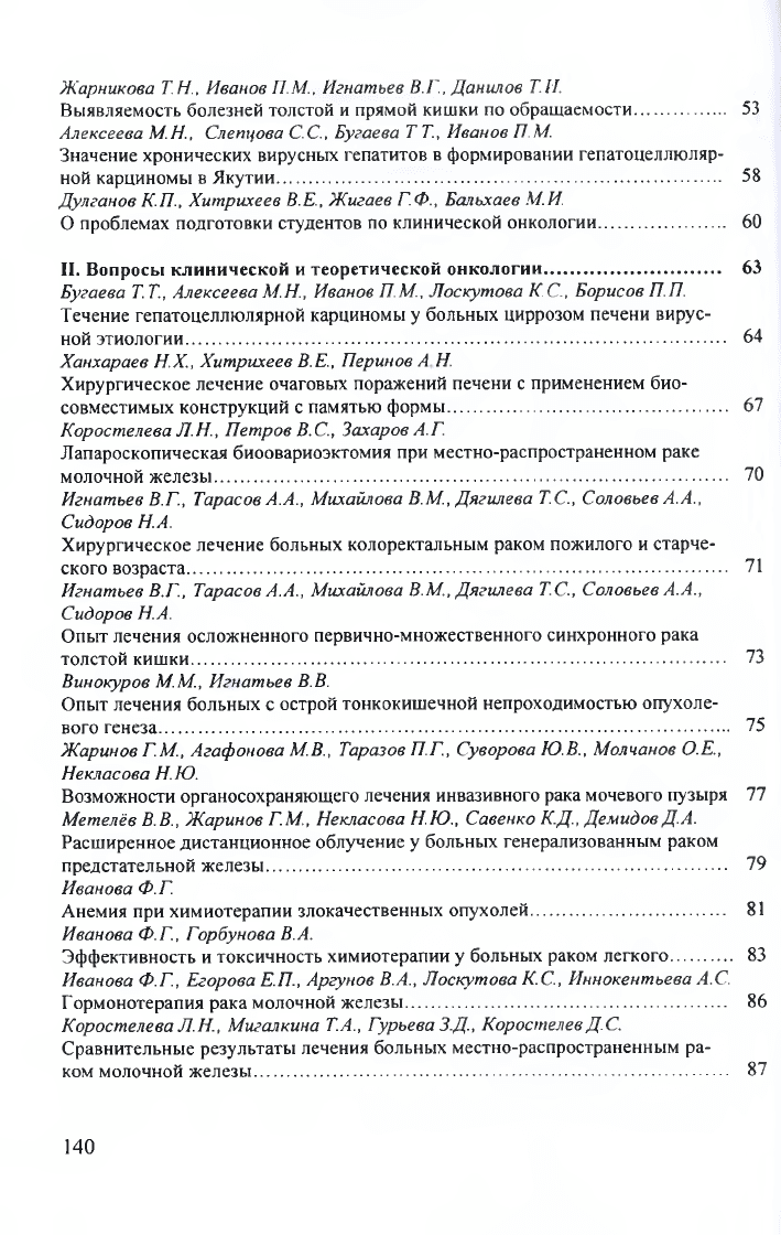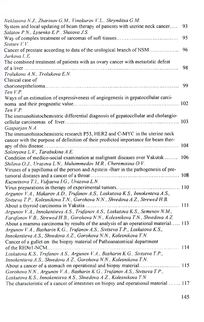 Вопросы профилактики, ранней диагностики и лечение злокачественных новообразований = Guestions of prebentive maintenance, early diagnostics and treatment of malignant tumors : материалы XII межрегиональной конференции онкологов (г. Якутск, июнь 2007 г.) / [редакционная коллегия: П. М. Иванов (ответственный редактор) и др.]. - Якутск : [б. и.], 2007. - 146 с. : ил.