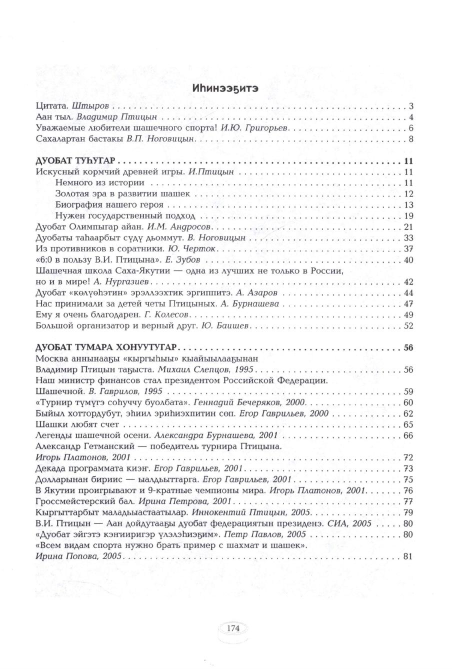 В книгу вошли воспоминания, статьи и интервью Владимира Ильича Птицына, знаменитого не только в Якутии спортивного организатора, внесшего воистину огромный вклад в популяризацию в республике и России шашечного спорта