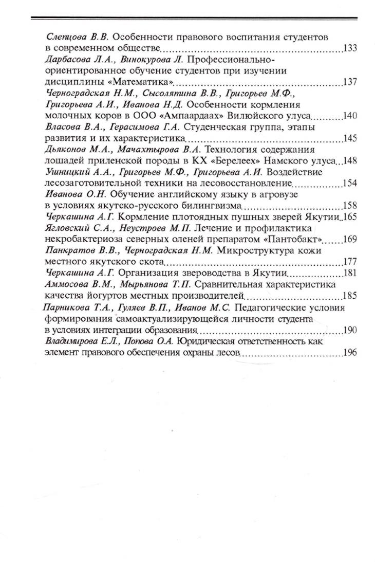 В сборник научных трудов вошли вопросы: животноводства, растениеводства, переработка сельскохозяйственной продукции, экономики, биотехнологии, здорового и культурного воспитания молодежи, учебно-методические аспекты