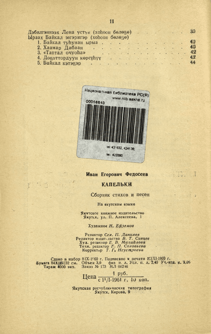 Федосеев. - Якутскай : Саха сиринээҕи кинигэ