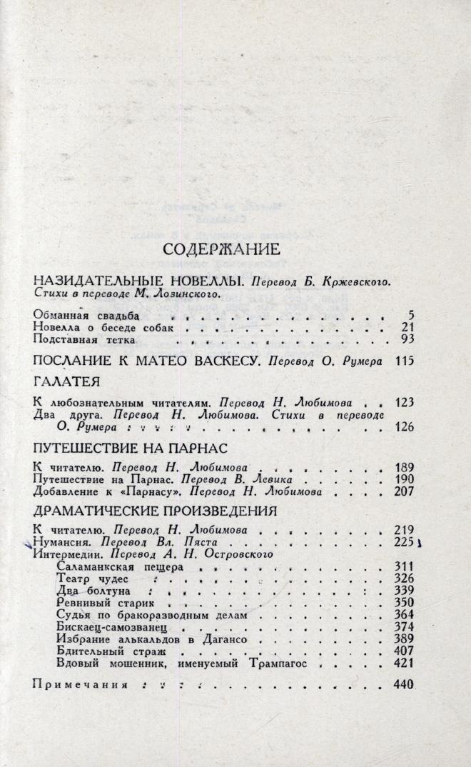 Собрание сочинений : в 5 томах : перевод с испанского / Мигель де Сервантес Сааведра ; под редакцией Ф. Кельина. - Москва : Правда, 1961-. - 21 см. - (Библиотека "Огонек"). Т. 4: Назидательные новеллы ; Послание к Матео Васкесу ; Галатея ; Путешествие на Парнас ; Драматические произведения ; гравюры: А. Гончарова, Д. Бисти. - 461, [3] с.
