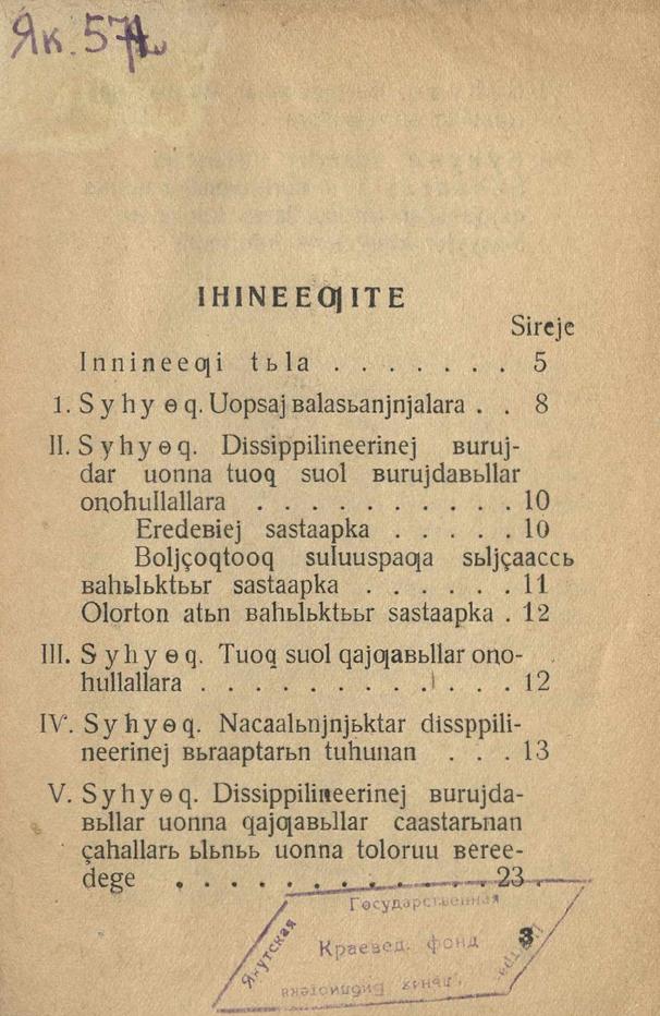 Байыаннай уонна муора дьыалатын Байыаннай Хамыссарыйаата. ОБКА диссиппилиинэтин бириэмэннэй устааба : (1925) / А. С. Кулакуоскай тылб. - Дьокуускай : Судаарыстыба Саха сиринээҕи бэчээттиир суута, 1932. - 34 с.