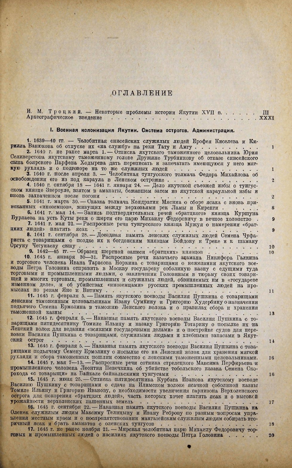 Колониальная политика Московского государства в Якутии XVII в. : сборник документов / под общ. ред. Я. П. Алкора и Б. Д. Грекова ; вступ. ст. И. М. Троцкого. - Ленинград : Изд-во Института народов Севера ЦИК СССР, 1936. - XXXII, 281 с.