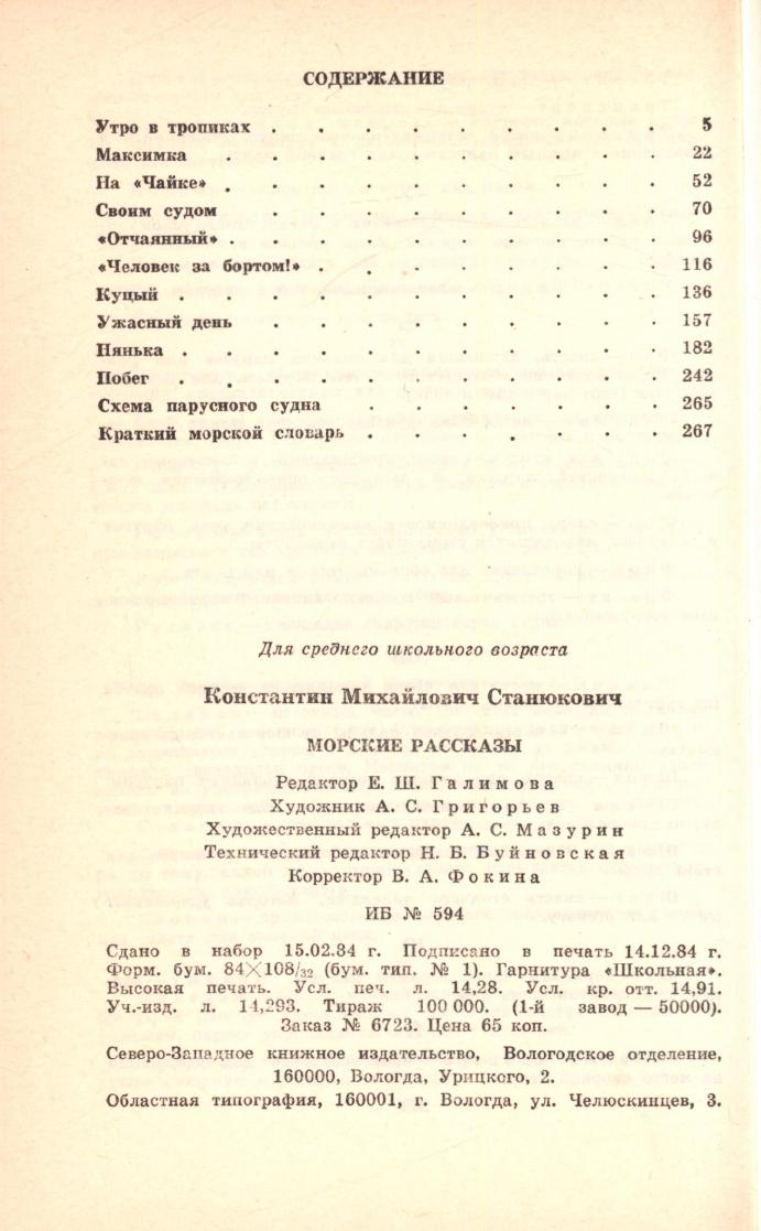 Морские рассказы : [для среднего школьного возраста] / К. М. Станюкович. - Архангельск ; Вологда : Северо-Западное книжное издательство, Вологодское отделение, 1985. - 272 с. ).