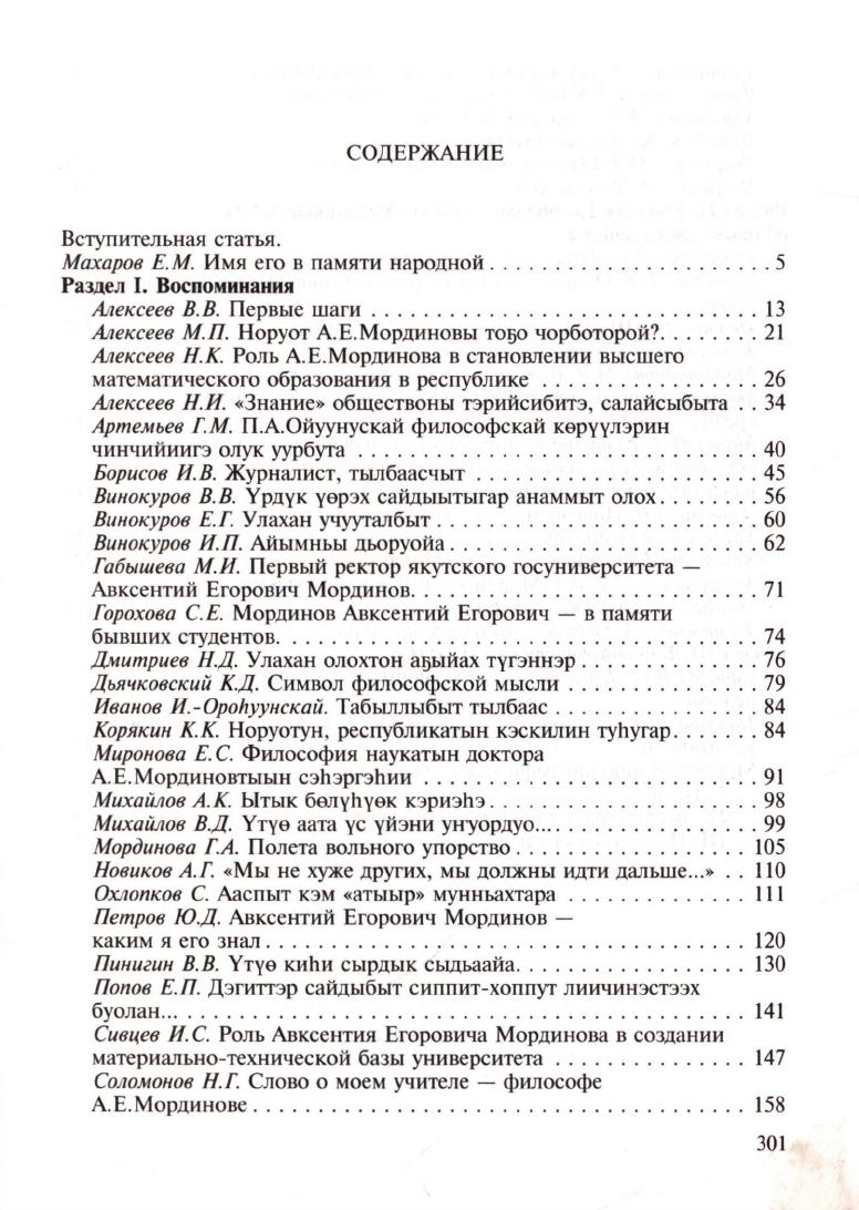 Имя его в памяти народной : к 100-летию со дня рождения А. Е. Мординова / Министерство науки и профессионального образования Республики Саха (Якутия), Российское философское общество, Северо-Восточный университет им. М. К. Аммосова, Кафедра философии СВФУ ; [составители: Е. М. Махаров и др. ; редакционная коллегия: Е. М. Махаров (ответственный редактор) и др. ; авторы предисловий: Е. А. Борисов, Е. И. Михайлова]. - Якутск : Сайдам, 2011. - 301, [1] с.