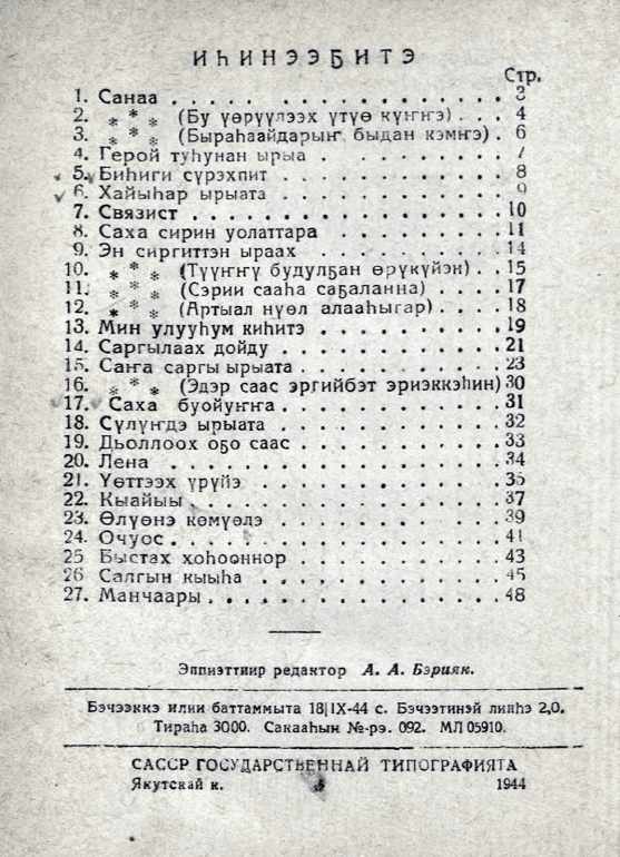 [эппиэттиир ред. А. А. Бэрияк]. - Якутскай :