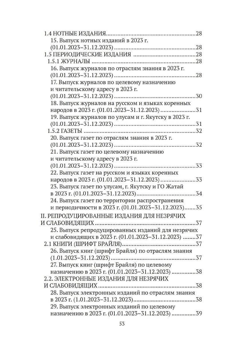 Печать Республики Саха (Якутия) : статистический сборник = Саха сирин бэчээтэ : статистика хомуурунньуга / Министерство культуры и духовного развития Республики Саха (Якутия), Национальная библиотека Республики Саха (Якутия), Республиканская библиотека для слепых, Национальный центр аудиовизуального наследия народов Республики Саха (Якутия) им. И. С. Жараева. - Якутск : РИЦ НИЦ НБ РС(Я), 2020