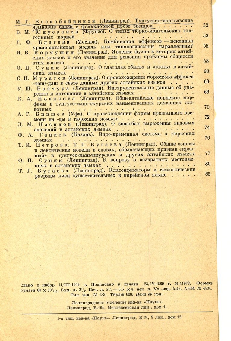 Проблема общности алтайских языков : тезисы докладов на первой алтаистической конференции, организованной Ленинградским отделением Института языкознания (27-30 мая 1969 г.). - Ленинград : Наука, Ленинградское отделение, 1969. - 85 c.