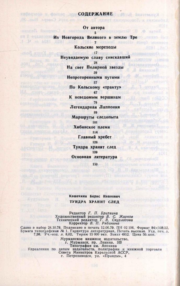 Тундра хранит след : очерки об исследователях Кольского Севера / Б. И. Кошечкин. - Мурманск : Книжное изд-во, 1979. - 152 с.