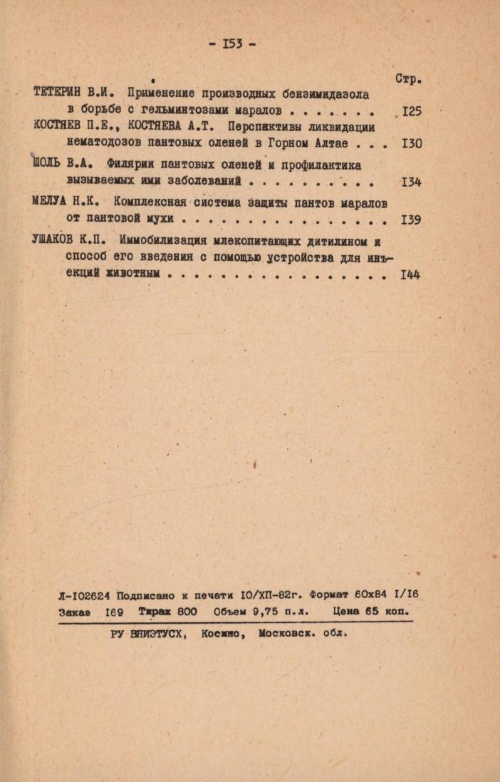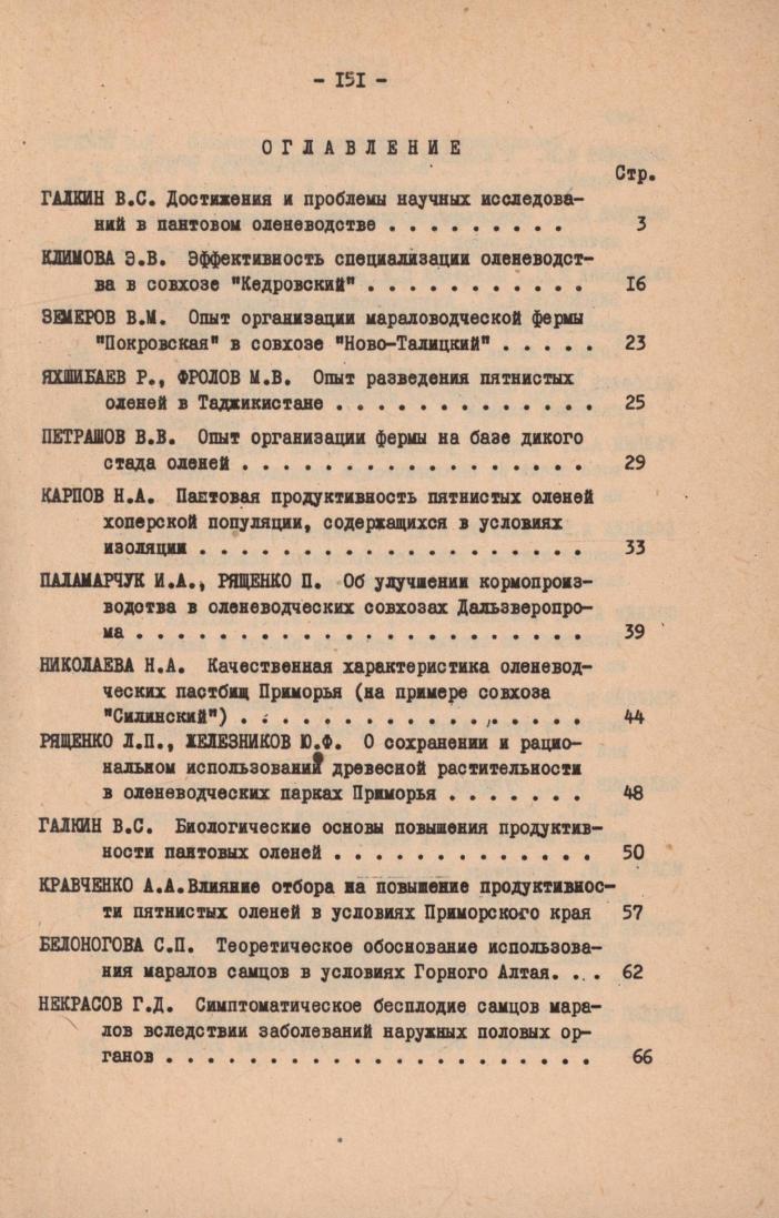 Прогрессивная технология пантового оленеводства / Министерство сельского хозяйства РСФСР, Всероссийское научно-производственное объединение звероводческой промышленности Зверопром РСФСР, Научно-исследовательский институт пушного звероводства и кролиководства им. В. А. Афанасьева, Центральная научно-исследовательская лаборатория пантового оленеводства. - Москва : [б.и.], 1982. - 153 с.