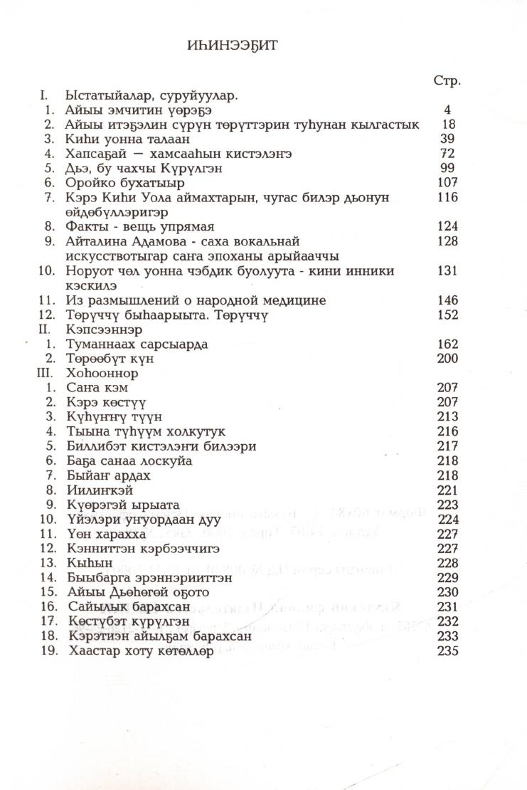 Айыы киһитэ, аах : [ыстатыйалар, кэпсээннэр, хоһооннор] / В. А. Кондаков ; редактор А. И. Степанова. - Дьокуускай : [и. с.], 2001. - 237 с.