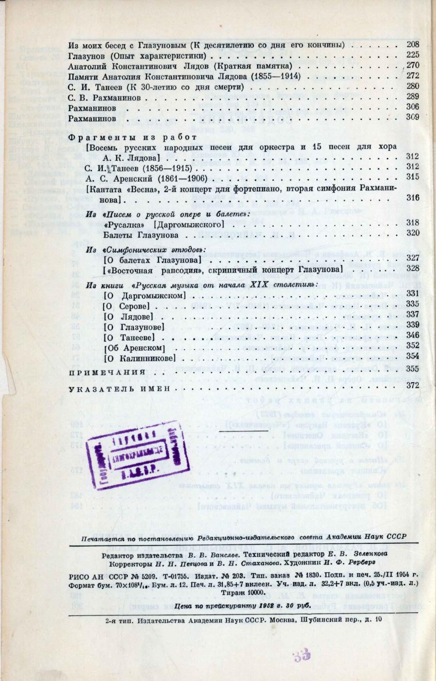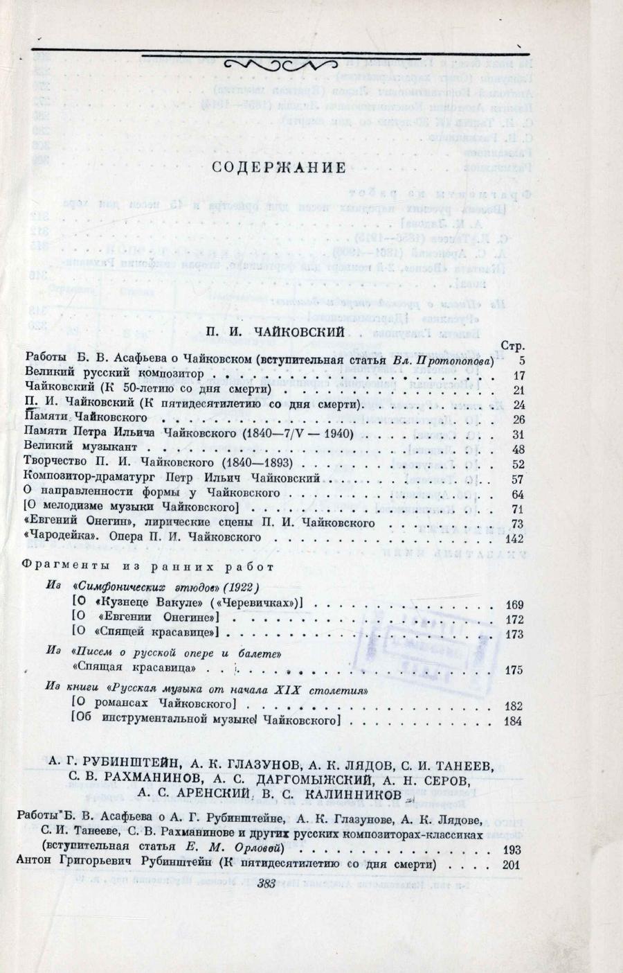 Избранные труды / Б. В. Асафьев ; [редакционная коллегия: И. Э. Грабарь, Д. Б. Кабалевский, И. С. Асафьева [и др.] ; Академия наук СССР, Институт истории искусств. - Москва : Издательство Академии наук СССР, 1952. - 21 см. Т. 2: Избранные работы о П. И. Чайковском, А. Г. Рубинштейне, А. К. Глазунове, А. К. Лядове, С. И. Танееве, С. В. Рахманинове и других русских композиторах / редакция текста, вступительная статья и примечания к работам о Чайковском, В. В. Протопопова, к работам о других композиторах Е. М. Орловой. - 1952. - 384 с.