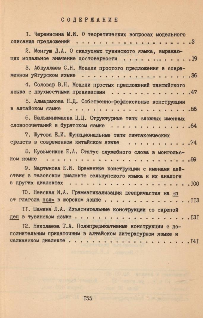 Предложение в языках Сибири : [сборник научных трудов) / АН СССР, Сибирское отделение, Институт истории, филологии и философии ; [редколлегия: М. И. Черемисина, К. К. Скривник (ответственный редактор) и др.]. - Новосибирск : б. и., 1989. - 155 с.