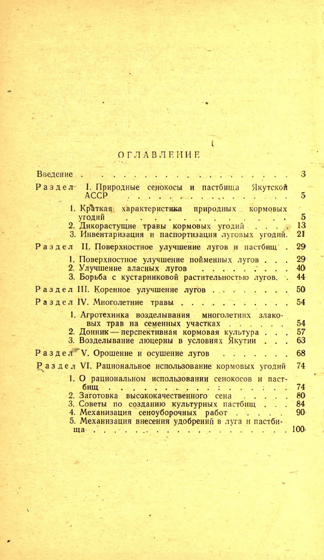 Настоящие советы по луговодству рассчитаны на работников производства. В книге даются характеристика и типология лугов Якутии, сведения об основных кормовых и вредных растениях сенокосов и пастбищ, мероприятия по поверхностному и коренному улучшению лугов, по рациональному использованию природных кормовых угодий, советы по созданию культурных пастбищ, вопросы агротехники трав, гидромелиорации лугов и механизации сеноуборочных работ