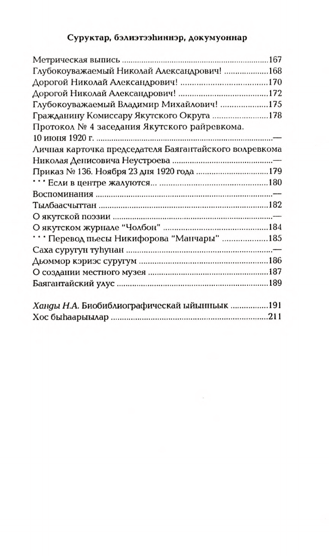 Кинигэҕэ классик суруйааччы Н. Д. Неустроев сахалыы уонна нууччалыы тылларынан суруйбут хоһоонноро, кэпсээннэрэ, очеркалара, суруктара, бэлиэтээһиннэрэ, докумуоннара, ону таһынан биобиблиографическай ыйынньык, хос быһаарыылар киирдилэр