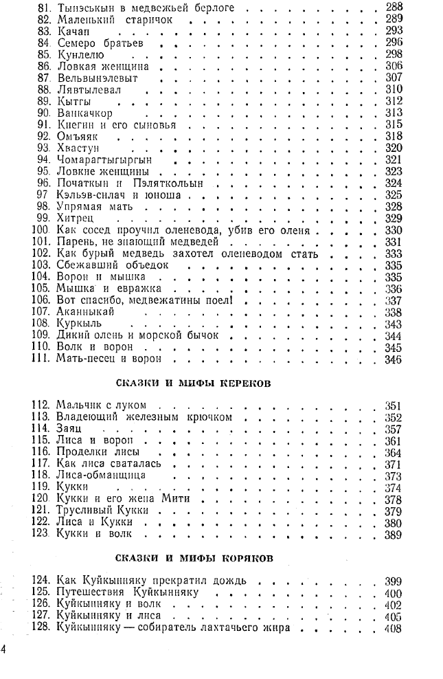 Первая широкая публикация сказок и мифов народов Чукотки и Камчатки, сопровождаемая фольклористическим предисловием и примечаниями. В сборник включены мифы, сказки о животных, бытовые и волшебные сказки азиатских эскимосов, чукчей, кереков, коряков и ительменов
