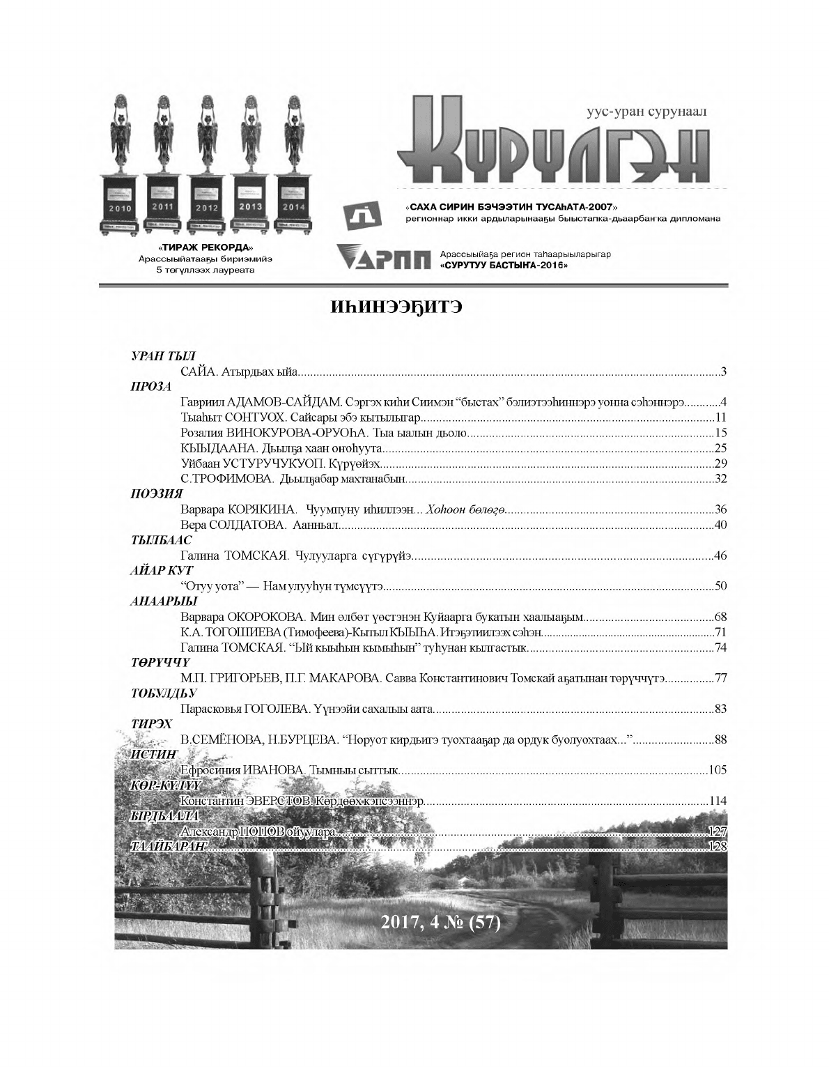 Күрүлгэн : уус-уран сурунаал / [редактор А. Г. Гуринов]. - Дьокуускай : Ситим Медиа, 2006 -.