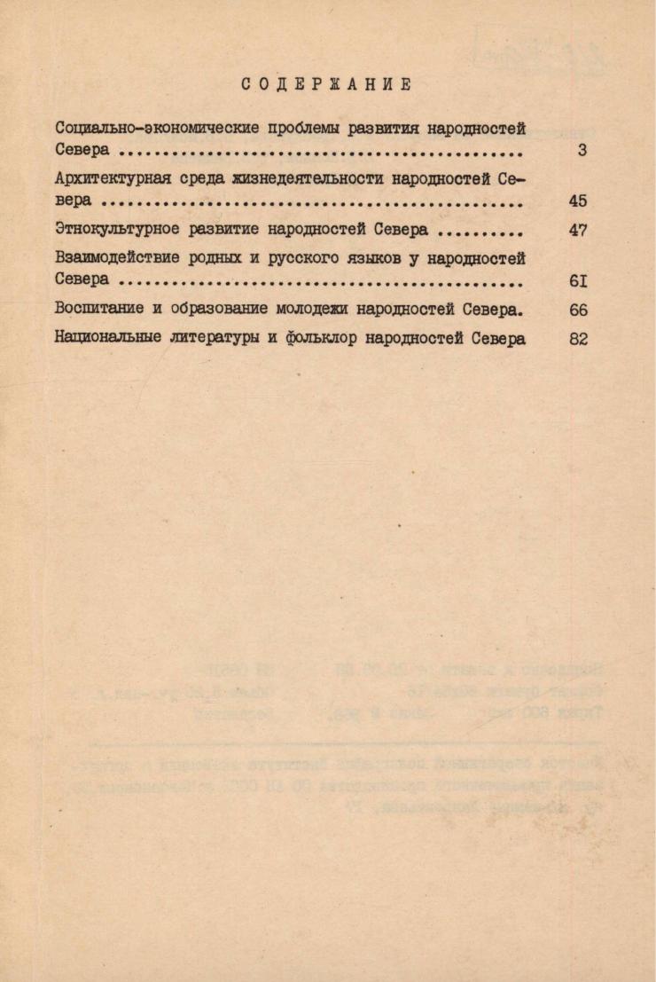 Предложения к концепции "Социальное и экономическое развитие народностей Севера в условиях научно-технического прогресса" : тезисы Всесоюзной научной конференции "Народности Севера: концепция социального и экономического развития в условиях научно-технического прогресса" (10-12 ноября 1988 г., г. Новосибирск) / Академия наук СССР, Сибирское отделение, Академия медицинских наук СССР СО, Всесоюзная академия сельско-хозяйственных наук СО [ответственный за выпуск М. М. Траскунова и др.]. - Новосибирск : [б.и.], 1988. - 82, [1] с.