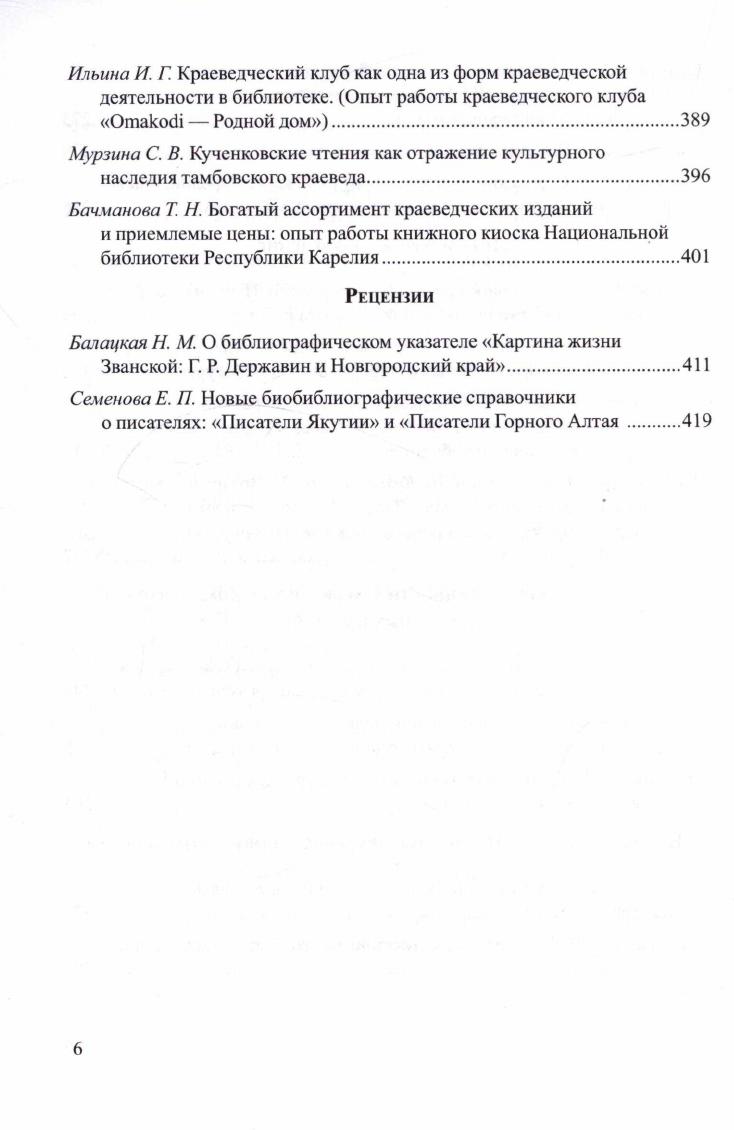 Проблемы краеведческой деятельности библиотек : сборник статей и материалов / Российская национальная библиотека, Российская библиотечная ассоциация ; редакционная коллегия: Н. М. Балацкая (председатель), Е. Н. Ефремова, Н. К. Леликова, М. Б. Мартиросова. - Санкт-Петербург : Издательство Российской национальной библиотеки, Отдел оперативной полиграфии, 2021-. Вып. 6. - 2021. - 424 с.