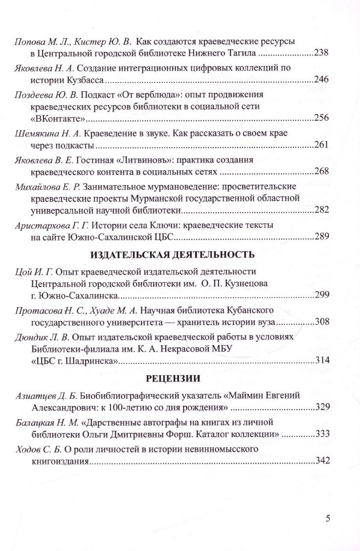 Проблемы краеведческой деятельности библиотек : сборник статей и материалов / Российская национальная библиотека, Российская библиотечная ассоциация ; редакционная коллегия: Н. М. Балацкая (председатель), Е. Н. Ефремова, Н. К. Леликова, М. Б. Мартиросова. - Санкт-Петербург : Издательство Российской национальной библиотеки, Отдел оперативной полиграфии, 2021-. - вып. 7. - 2022. - 364 с. : ил., факс., табл.