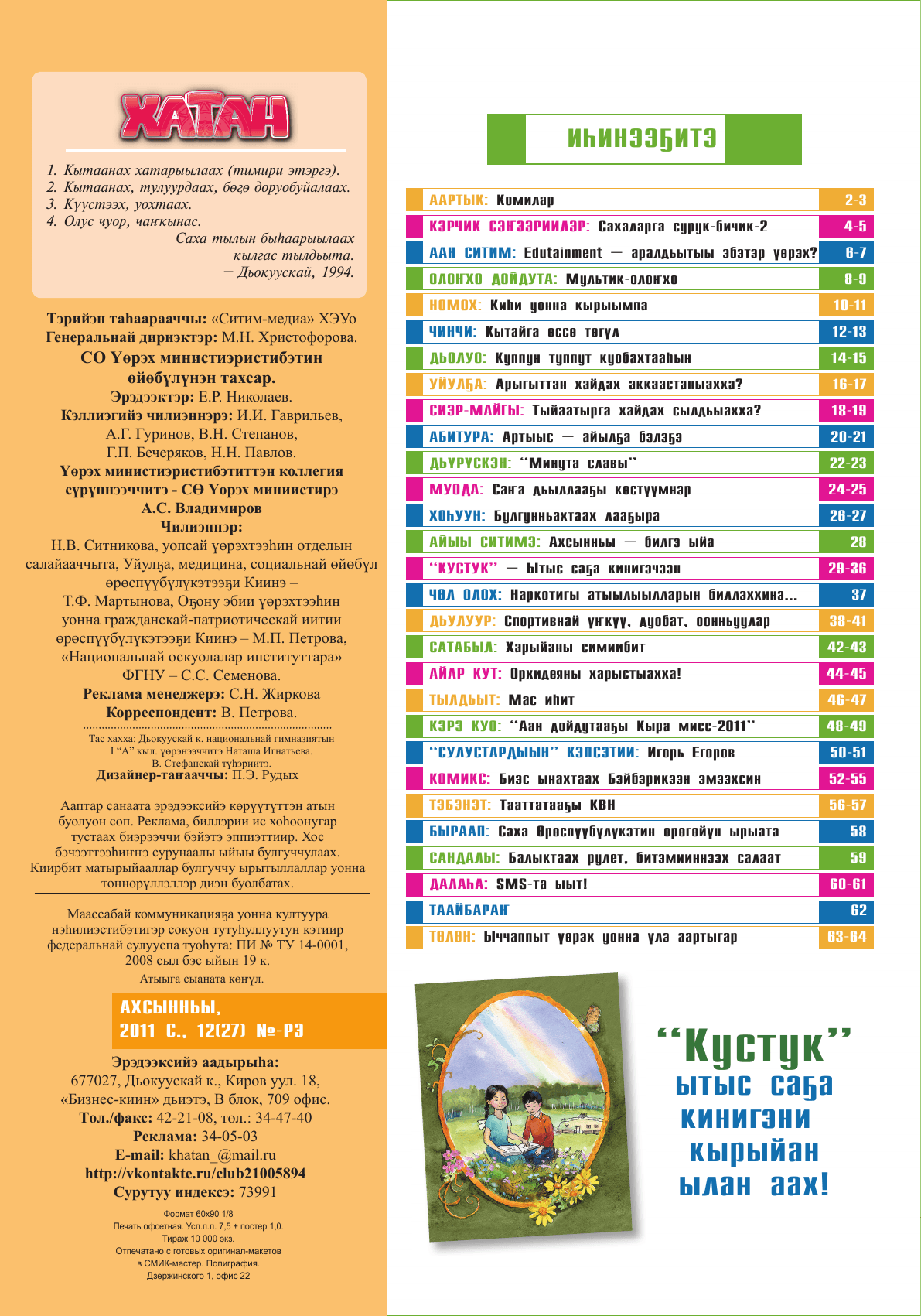 - 83. Хатан: ыччат сайдам сурунаала, 2011, №8 (23) Атырдьах ыйа