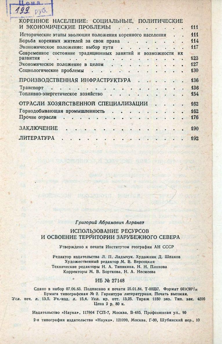 Использование ресурсов и освоение территории зарубежного Севера / Г. А. Агранат ; ответственный редактор А. Г. Милейковский ; Академия наук СССР, Институт географии. - Москва : Наука, 1984. - 199, [1] с. + 1 л. карты.