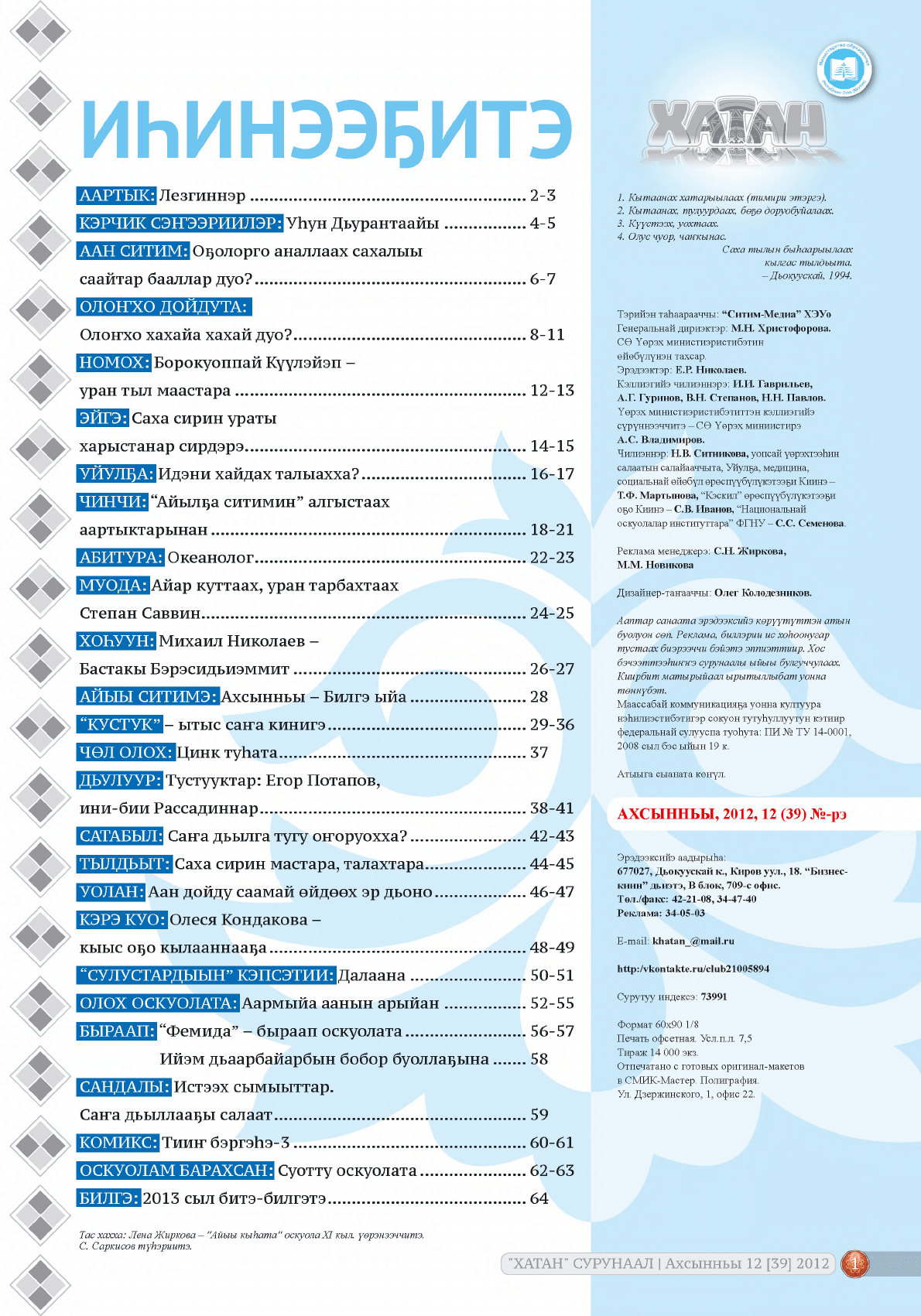 2012, N 12 (39), ахсынньы. - 2012. - 64 с.