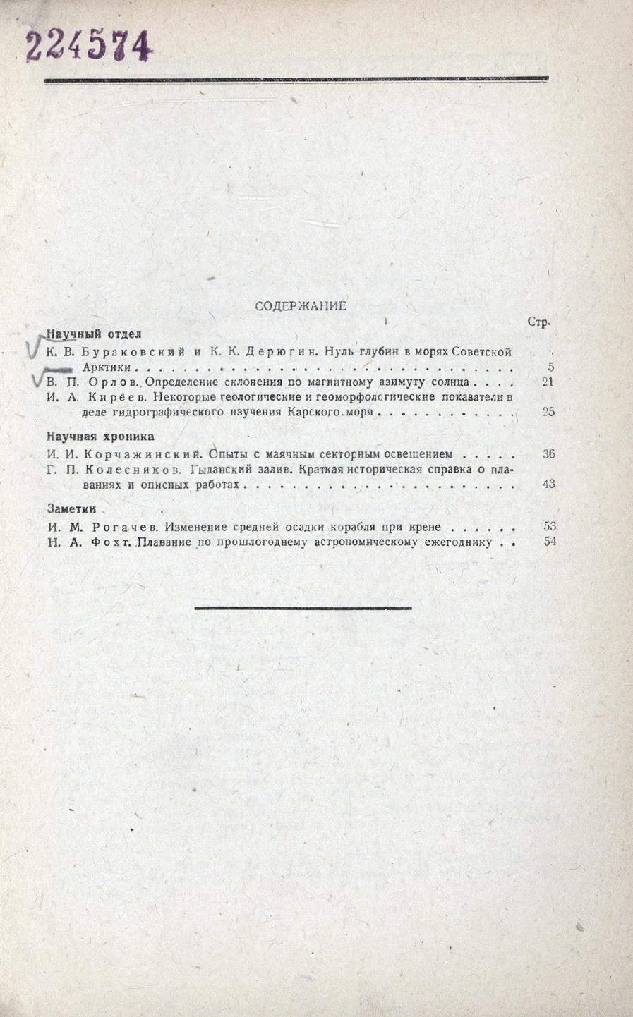 Северный морской путь : сборник статей по гидрографии и мореплаванию / Гидрографическое управление Главсевморпути при СНК СССР ; [ответственный редактор: П. В. Орловский]. - Ленинград : Издательство Главсевморпути, 1934-1941. - 26 см. XV. - 1940. - 54 с.