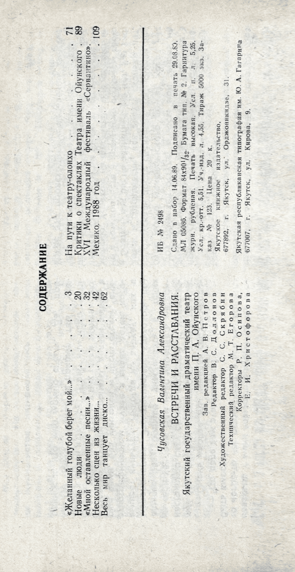 Встречи и расставания: Якутский государственный драматический театр им. П. А. Ойунского