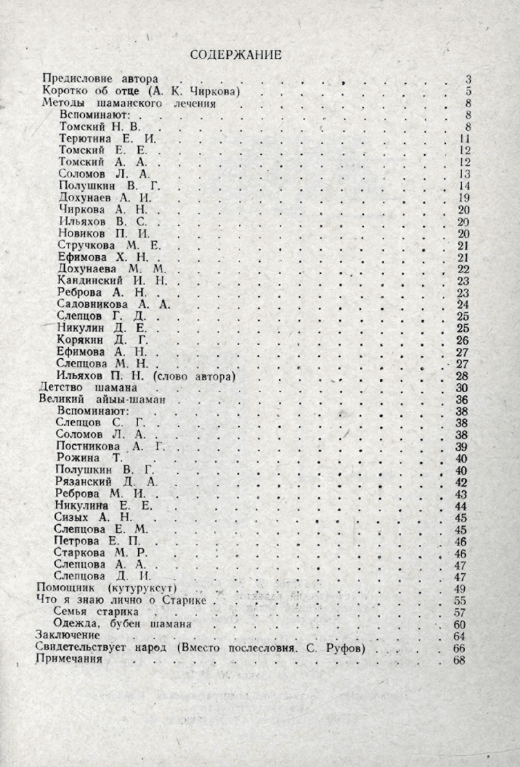 Автор рассказывает о жизни своего земляка - известного абыйского шамана, народного целителя К. И. Чиркова, пользующегося в свое время большим уважением населения северных районов нашей республики. Приводит конкретные примеры и интересные факты