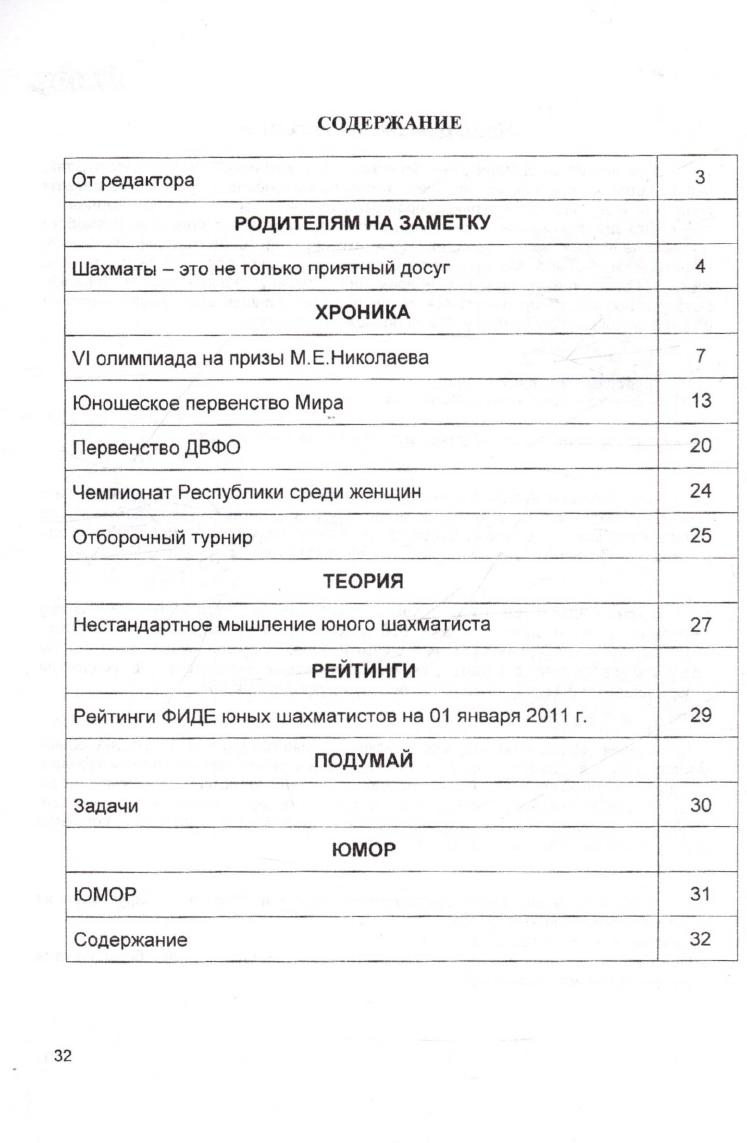 Журнал раскрывает историю шахматного образования в республике, рассказывает о результатах и достижениях юных шахматистов республики, включает теоретический материал, шахматные задачи для тех, кто хочет развивать логику, ум и добиваться успехов в жизни