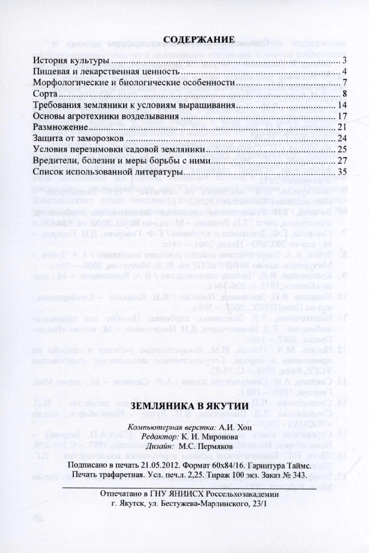 Земляника в Якутии / Рос. акад. с.-х. наук, Сиб. отд-ние, Гос. науч. учреждение Якут. науч.- исслед. ин-т сел. хоз-ва ; [отв. ред. П. П. Охлопкова, д.с.-х.н.]. - Якутск : ГНУ ЯНИИСХ Россельхозакадемии, 2012. - 35, [1] с.