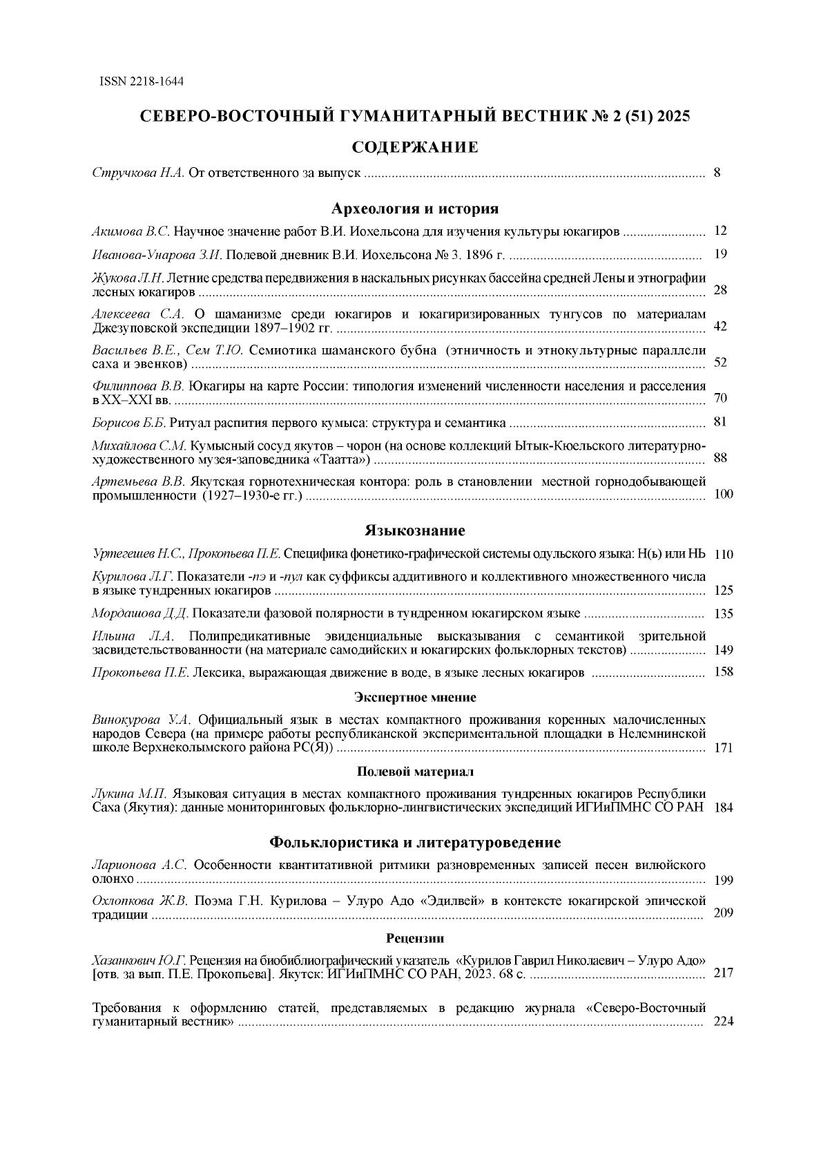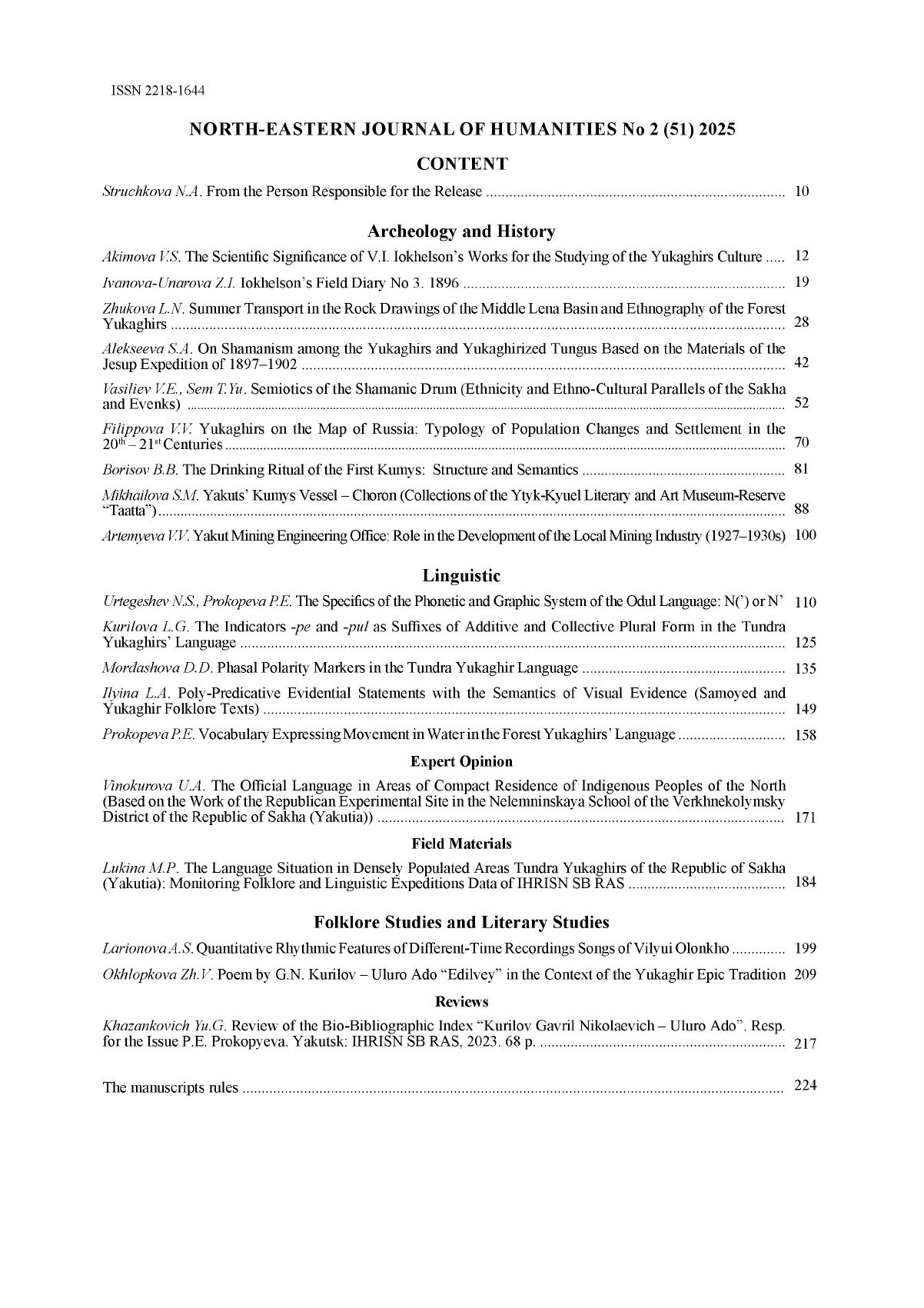 Северо-Восточный гуманитарный вестник : научный журнал / учредитель Инcтитут гуманитарных исследований и проблем малочисленных народов Севера СО РАН ; редколлегия: Ефремов Н. Н.(главный редактор) и др. - Якутск : Федеральное государственное бюджетное учреждение науки Институт гуманитарных исследований и проблем малочисленных народов Севера Сибирского отделения Российской академии наук, 2010-. - ISSN 2218-1644 (print)