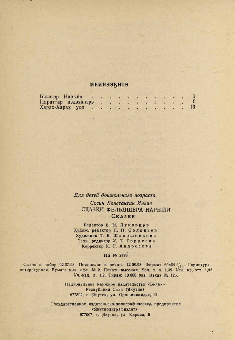 Луковцев]. - Дьокуускай : Бичик, 1993. - 22, [2]