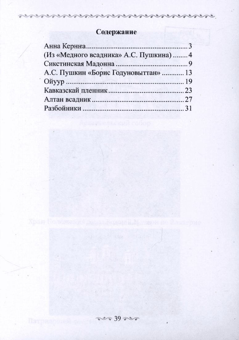 Сборник состоит из переводов произведений А. С. Пушкина и стихов о поэте