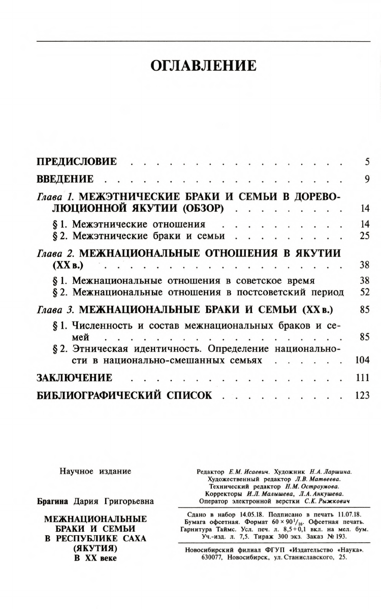 Межнациональные браки и семьи в Республике Саха (Якутия) в XX веке / Д. Г. Брагина ; отв. ред. д.ист.н. Г. В. Толстых ; Акад. наук Респ. Саха (Якутия). - Новосибирск : Наука, 2018. - 134, [2] с.